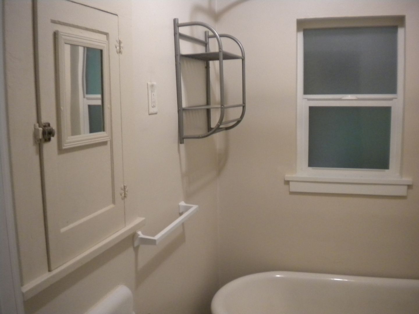 * Cute bathroom with old-fashioned claw-foot tub/shower combination..
